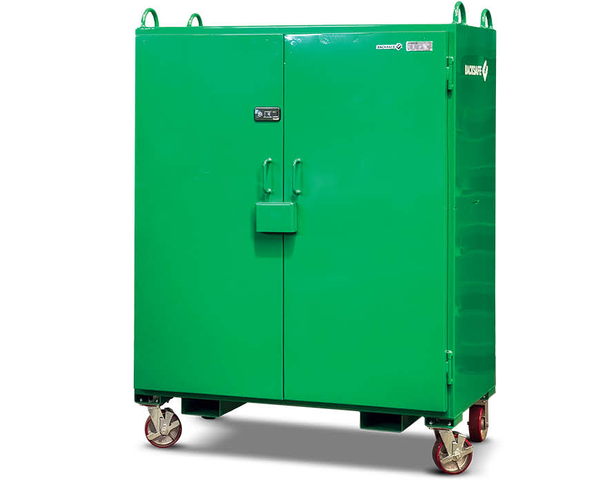 Heavy-duty, lockable site cabinet for secure tool storage—built tough for transport and protection in harsh environments.